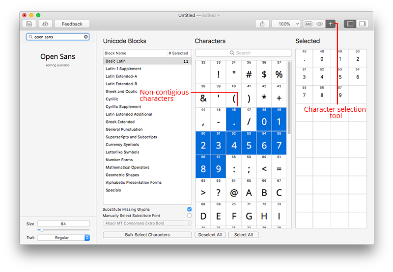Selecting Glyphs to Include