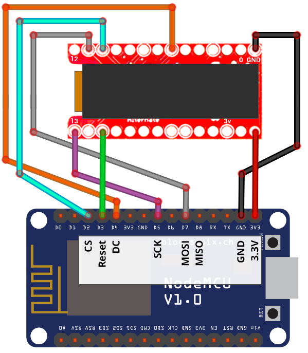 Very small monochrome, OLED display. Moddable uses the TeensyView configured in standard mode. |
